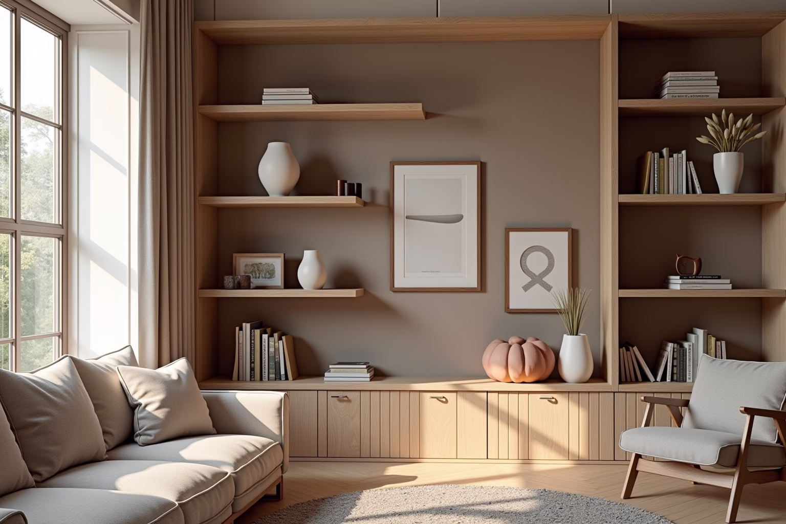 Betrachte die Farben, Materialien und Formen, die bereits in deinem Raum vorhanden sind. Wähle Dekorationsobjekte, die diese Elemente aufgreifen oder harmonisch ergänzen. Wenn du einen minimalistischen Stil hast, wähle wenige, aber aussagekräftige Stücke. Bei einem Bohème-Stil kannst du vielfältigere und farbenfrohere Elemente kombinieren. Deine Regale sollten ein Spiegelbild deines gesamten Wohnkonzepts sein.