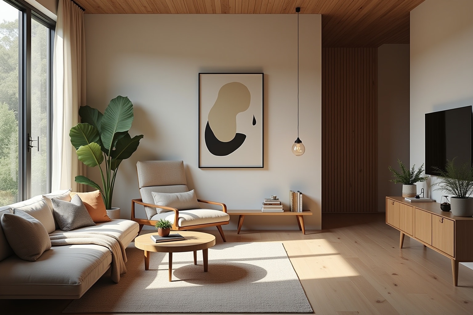 - Organische Formen und Texturen: Möbel und Dekoartikel mit abgerundeten Kanten, fließenden Linien und natürlichen Oberflächen (wie Stein, Holz, Terrakotta) spiegeln die Formen der Natur wider.