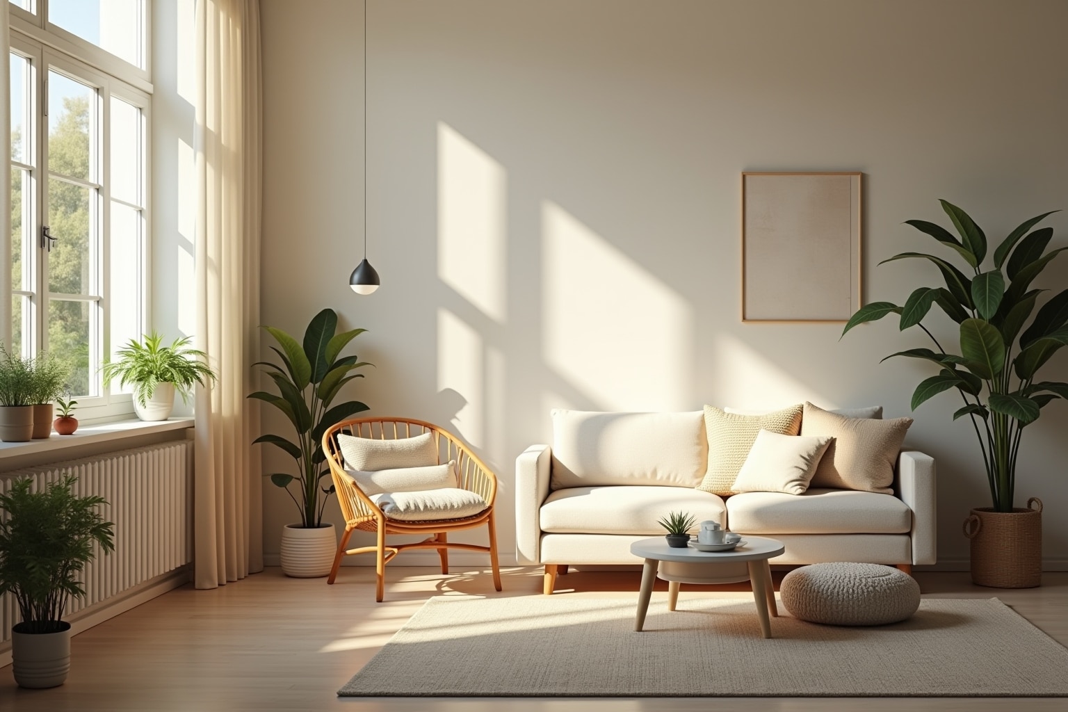 Beginne mit der Überarbeitung deiner Farbpalette hin zu sanfteren, beruhigenden Tönen. Integriere mehr natürliche Elemente wie Pflanzen oder Holzaccessoires. Optimiere die Beleuchtung durch den Einsatz von warmweißem, dimmbarem Licht und schaffe durch eine klare Anordnung der Möbel angenehme Laufwege. Ein paar Kissen und Decken aus angenehmen Materialien können ebenfalls Wunder wirken.